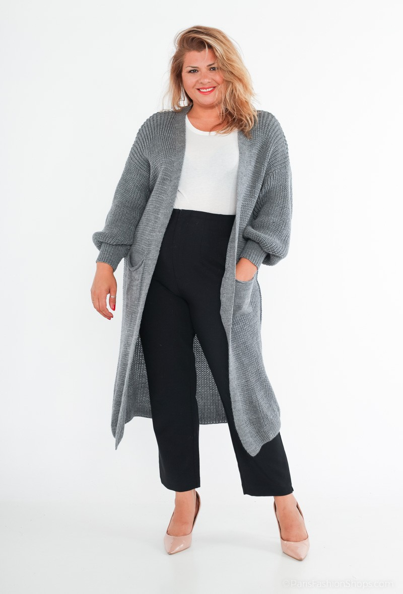 Long knit vest with puff sleeve and pocket.