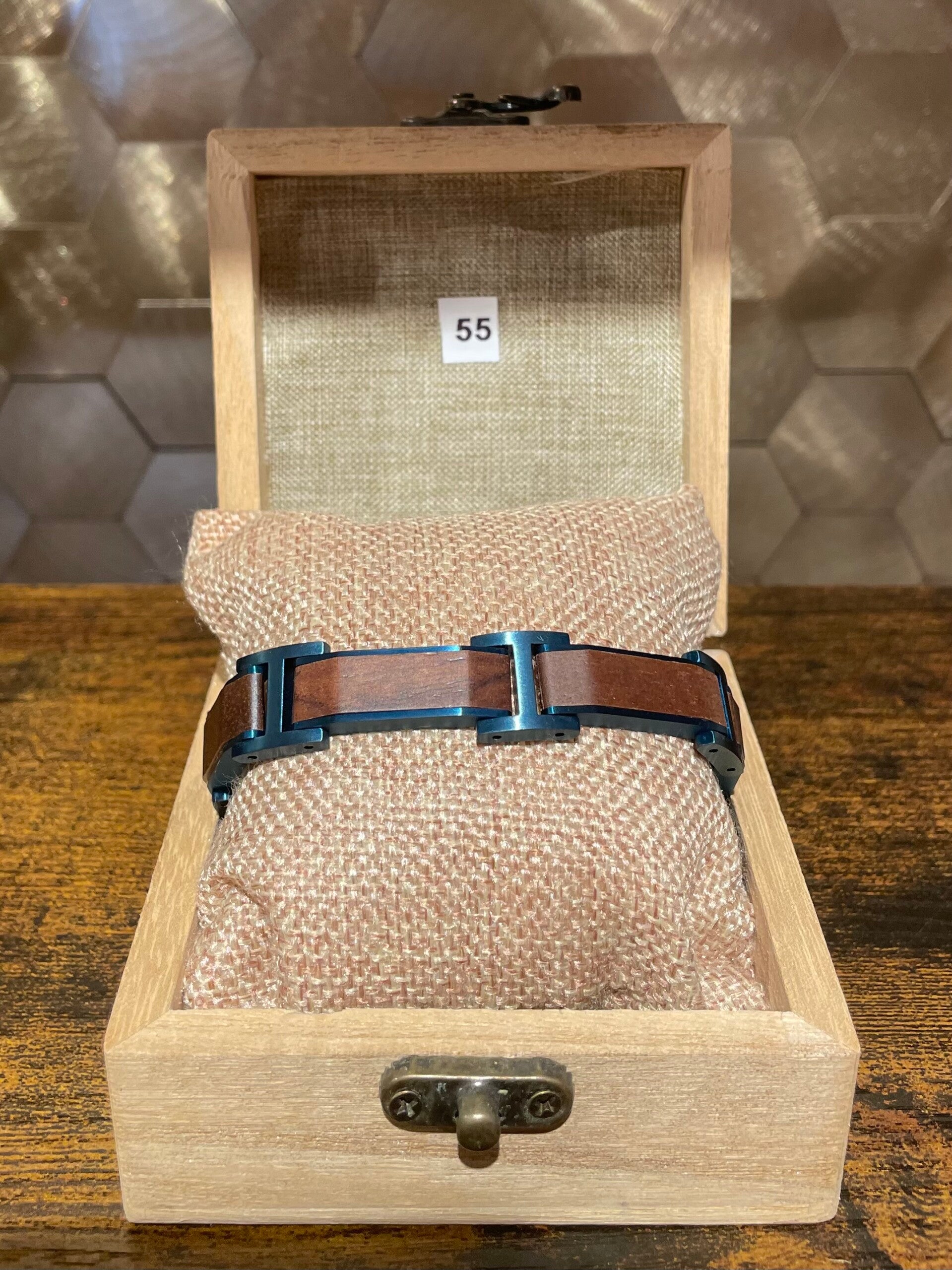 This wooden bracelet for men is adjustable, and the hardware to adjust it to size is included.