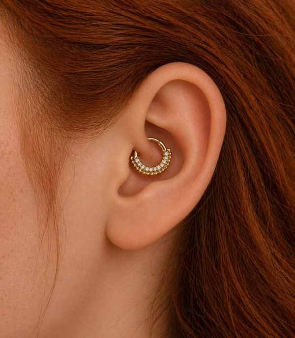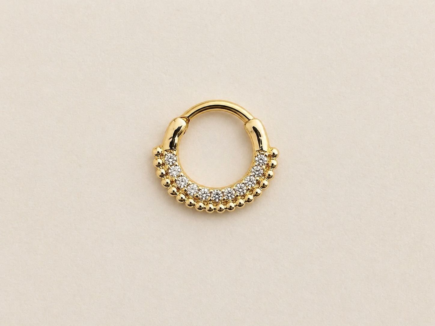 Elevate your look with this elegant and sophisticated piercing ring. Crafted from high-quality gold-toned titanium, this clicker combines a luxurious aesthetic with skin-friendly durability.