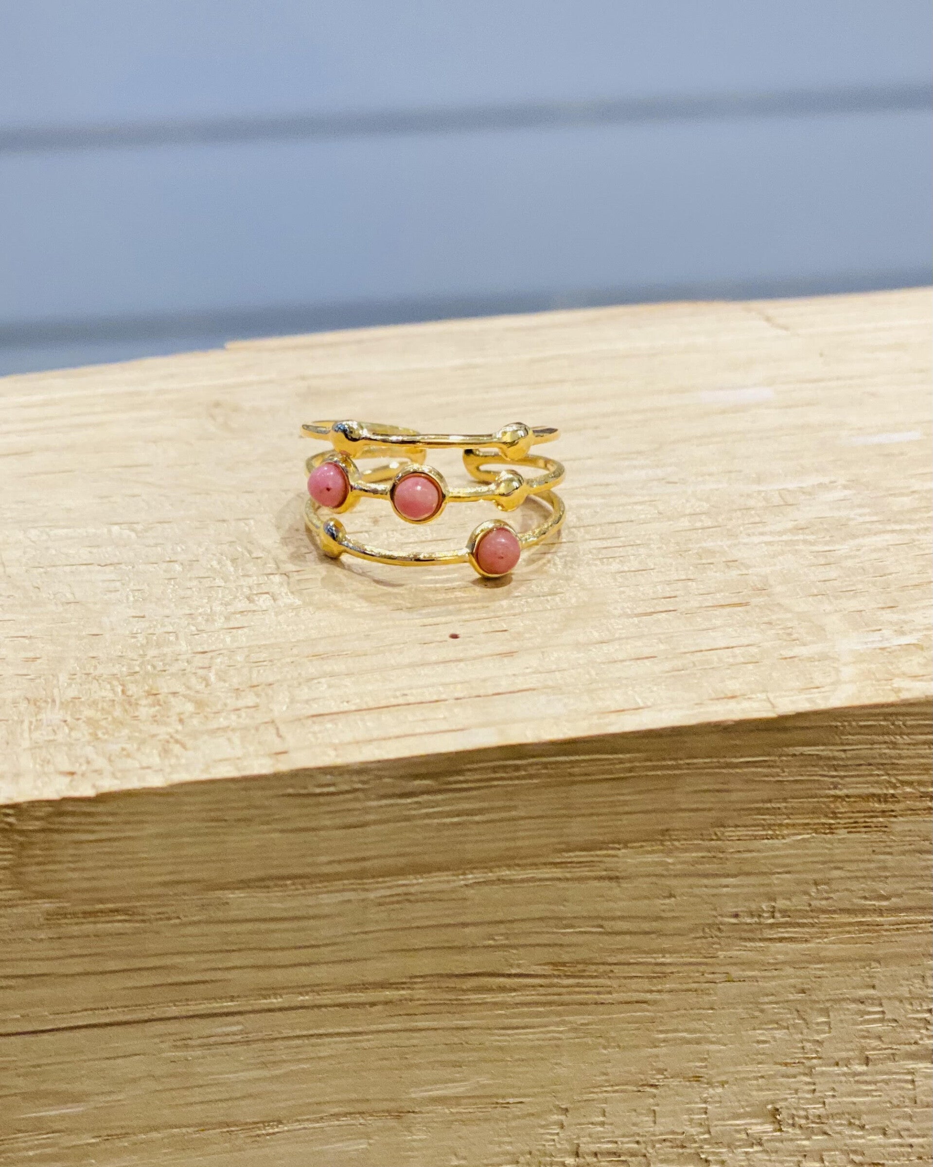 Stainless steel, gold plated with pink agate