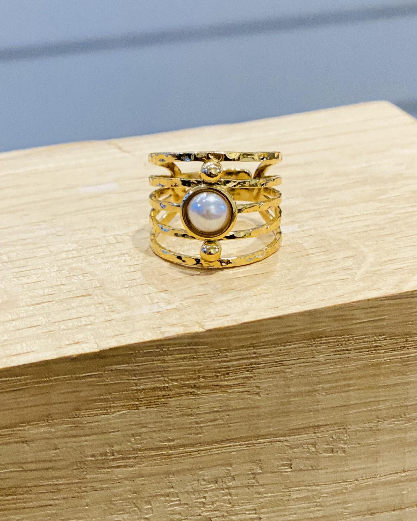 Stainless steel, gold plated with white pearl